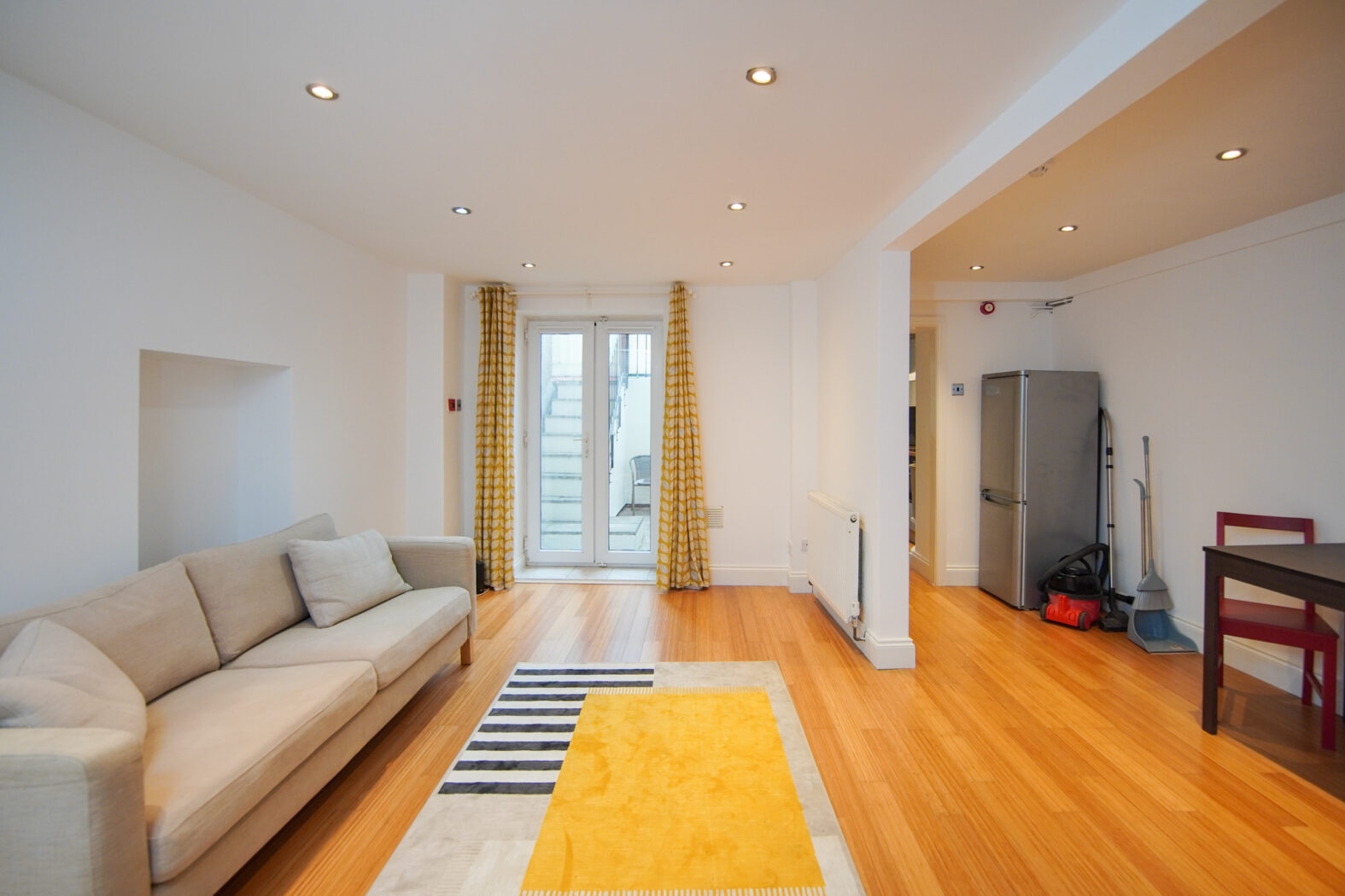 The property comprises of a fitted modern kitchen with inset sink, integrated oven and a fridge freezer. The kitchen then leads to you to a modern reception space with separate living and dining area, with double glazed patio doors. There is a discreetly located bedroom area situated behind sliding doors from the living room with ample space and has a very cosy feel. There is also a spacious shower room with a utility area that has a standalone washing machine. The space itself has been recently refurbished with a modern yet homely feel. The property further benefits from an outside courtyard with table set.