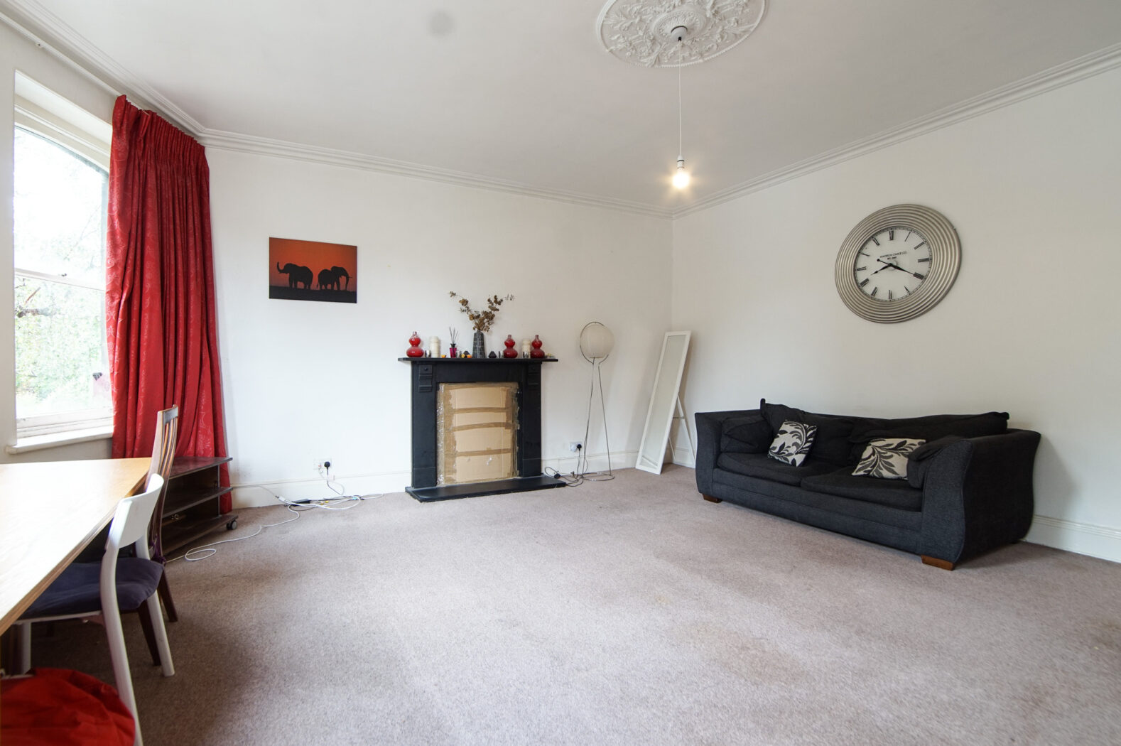 The flat is spacious and offers period features including vaulted ceilings and large sash windows which make the property feel light and airy. The accommodation briefly comprises: a large living/dining room which has a large bay and feature fireplace, a separate kitchen which is includes a free standing fridge freezer, dishwasher, washing machine and an electric oven and hobs, there are two double bedrooms of very good sizes, one of which benefits from having large built in shelving units and built in wardrobes.