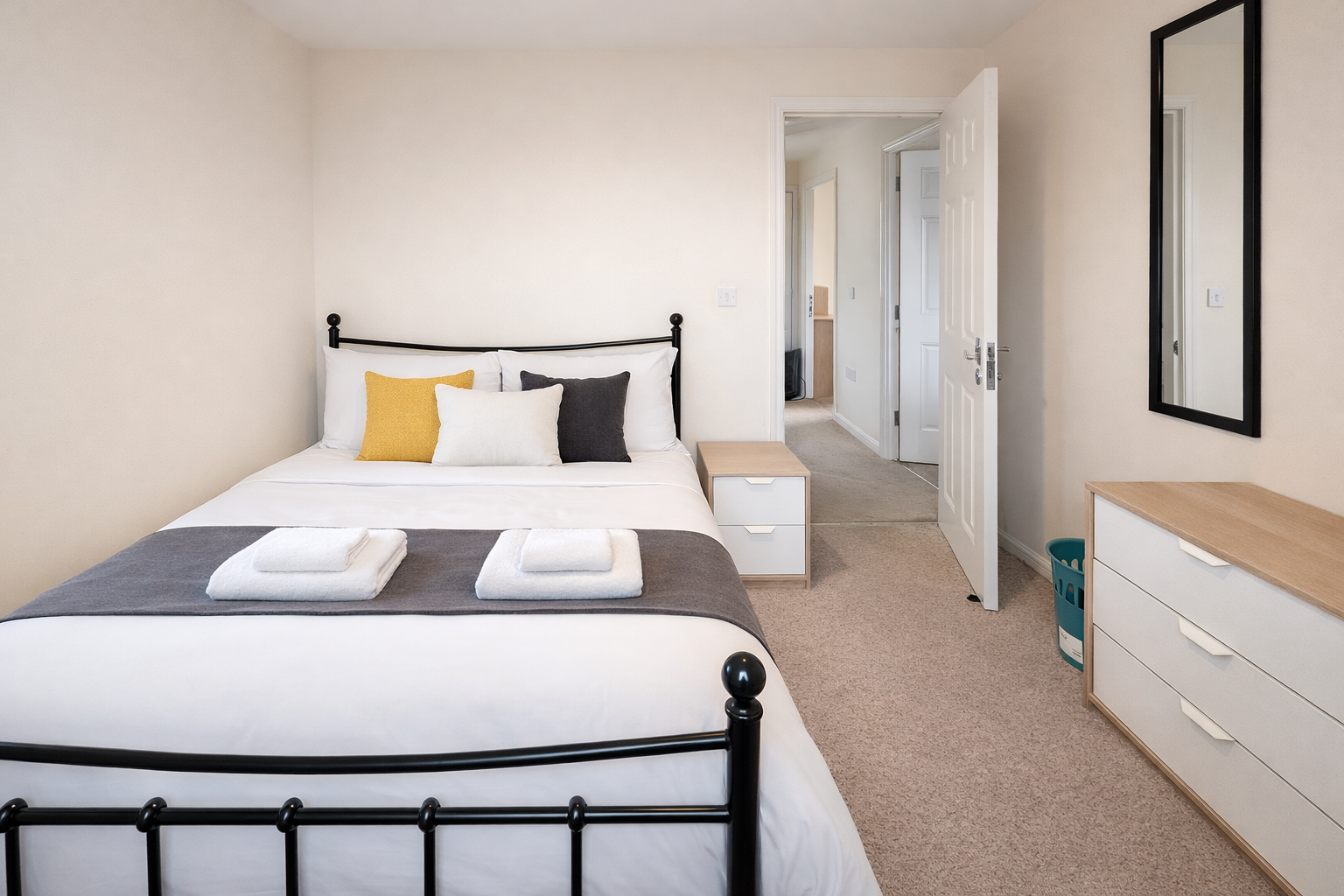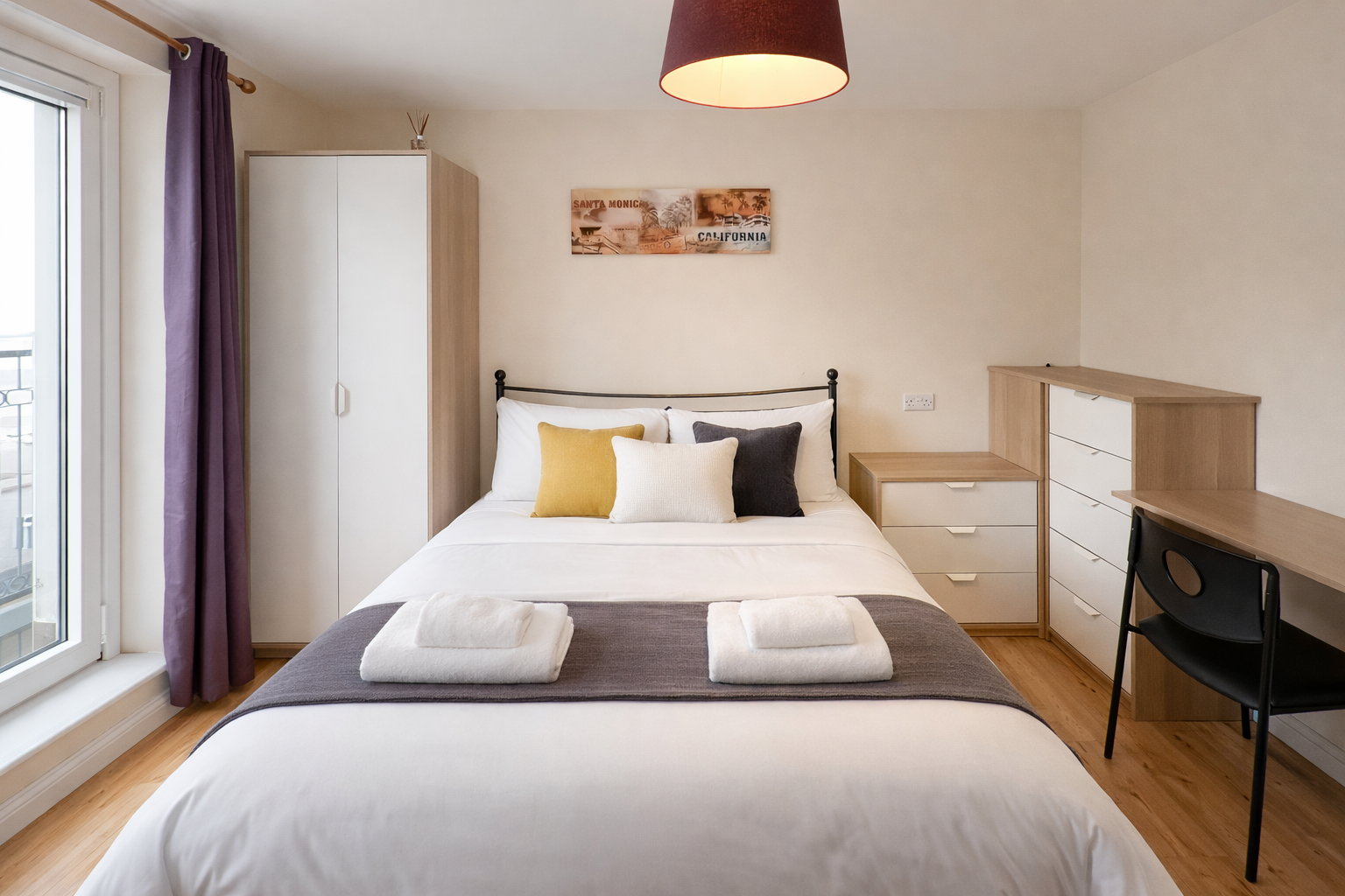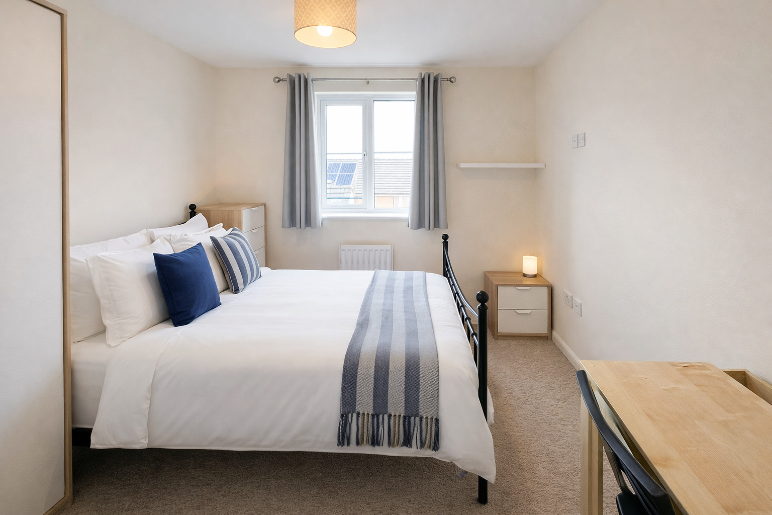 Three of the four bedrooms are spacious doubles that are offered with modern IKEA furnishings including double beds, desks, chairs, wardrobe and drawers, whilst the fourth room is slightly smaller and has three quarter bed and a built in wardrobe and drawers.