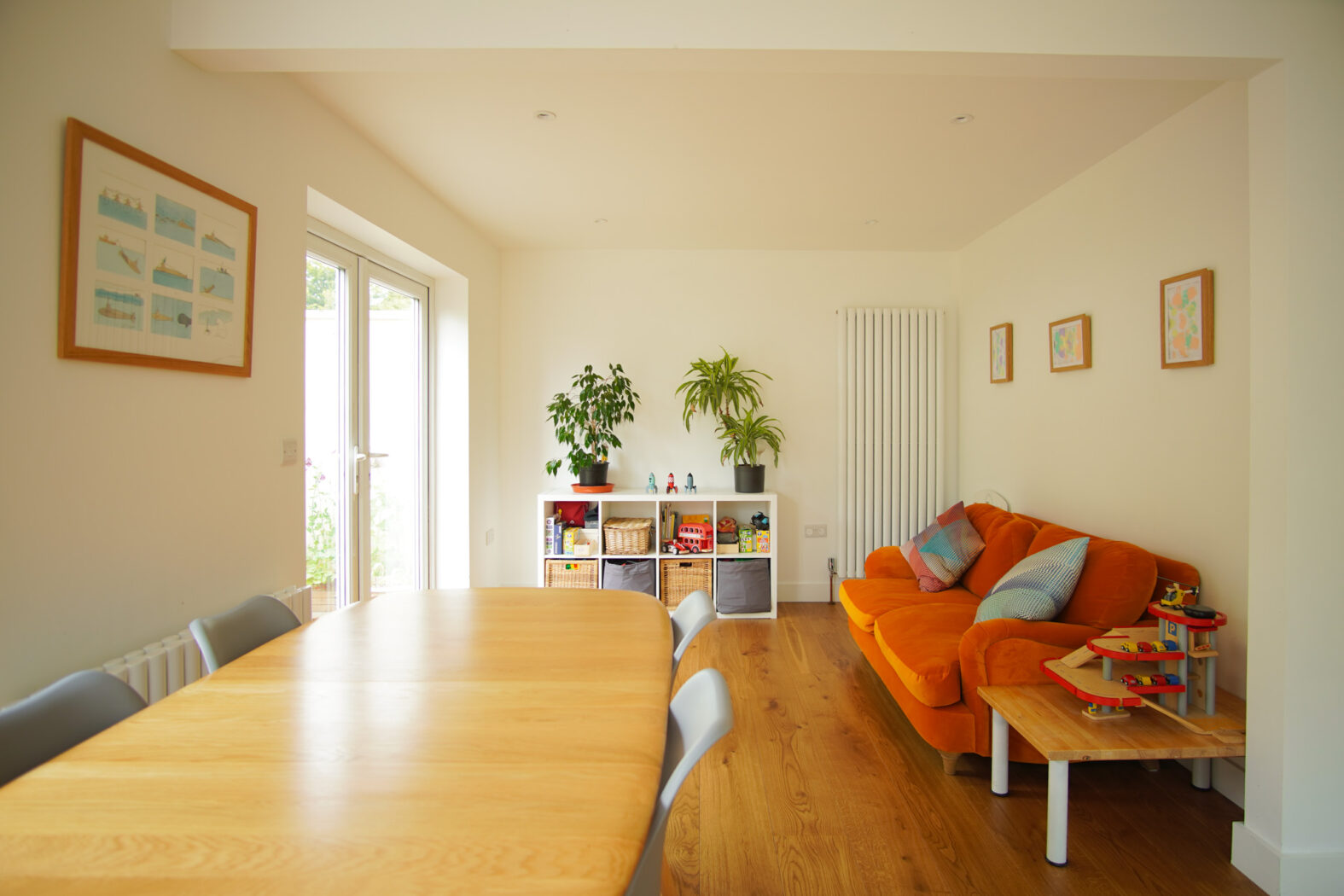 This lovely house benefits from having beautiful stain glass windows at the entrance. On your right, you will find the generously sized living room with a large window bringing in lots of natural light. As you follow the hallway down, you come to the open plan kitchen-diner which is a great space for hosting friends and family with easy access in and out of the garden through the French Doors. Upstairs, you will find two double bedrooms, both of which are very good sizes. You will also find the single room, perfect for an office or as a childs bedroom. You will also find the modern family bathroom with a stand alone shower, separate bath, toiler and sink.