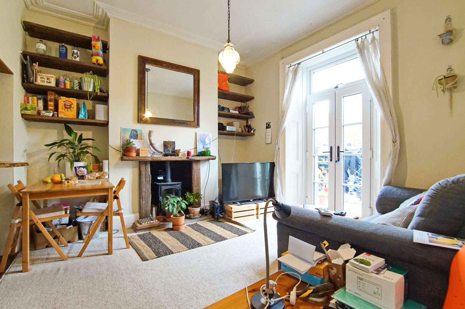The apartment briefly comprises; a spacious lounge area with a working log burner, a kitchen off the lounge with white goods included, through the lounge there is a decked outside space, two bedrooms, one of which is a very large double room and the second is a single room which could also be used as an office space, finally, there is a bathroom with a shower over the bath.