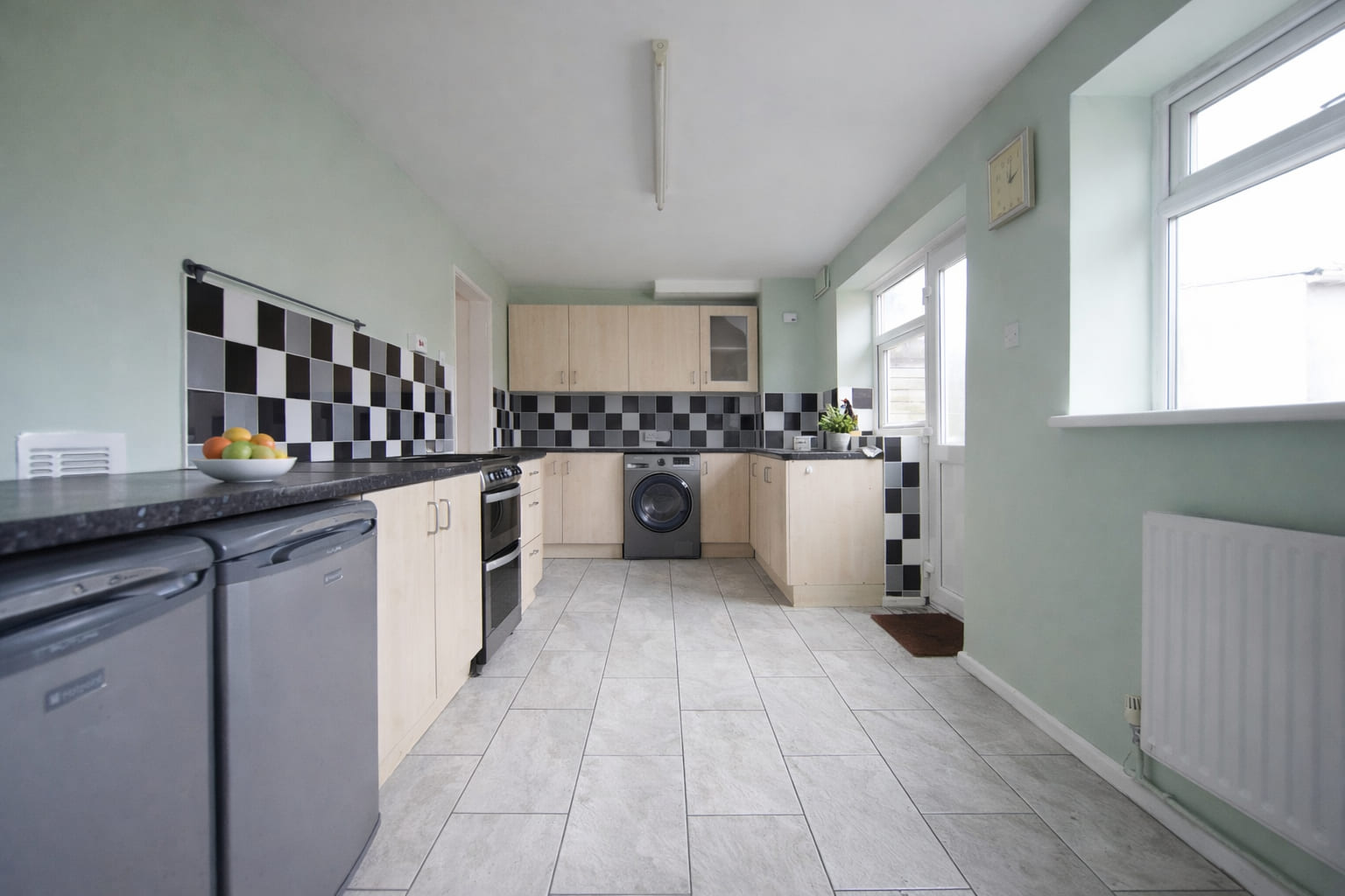 Upon entering the home, the living room benefits from ample natural light, as well as featuring built-in shelving, providing convenient storage. To the rear of the property is a well-designed open-plan kitchen and dining area, which comes fully equipped with all white goods and and features direct access to the rear garden.
