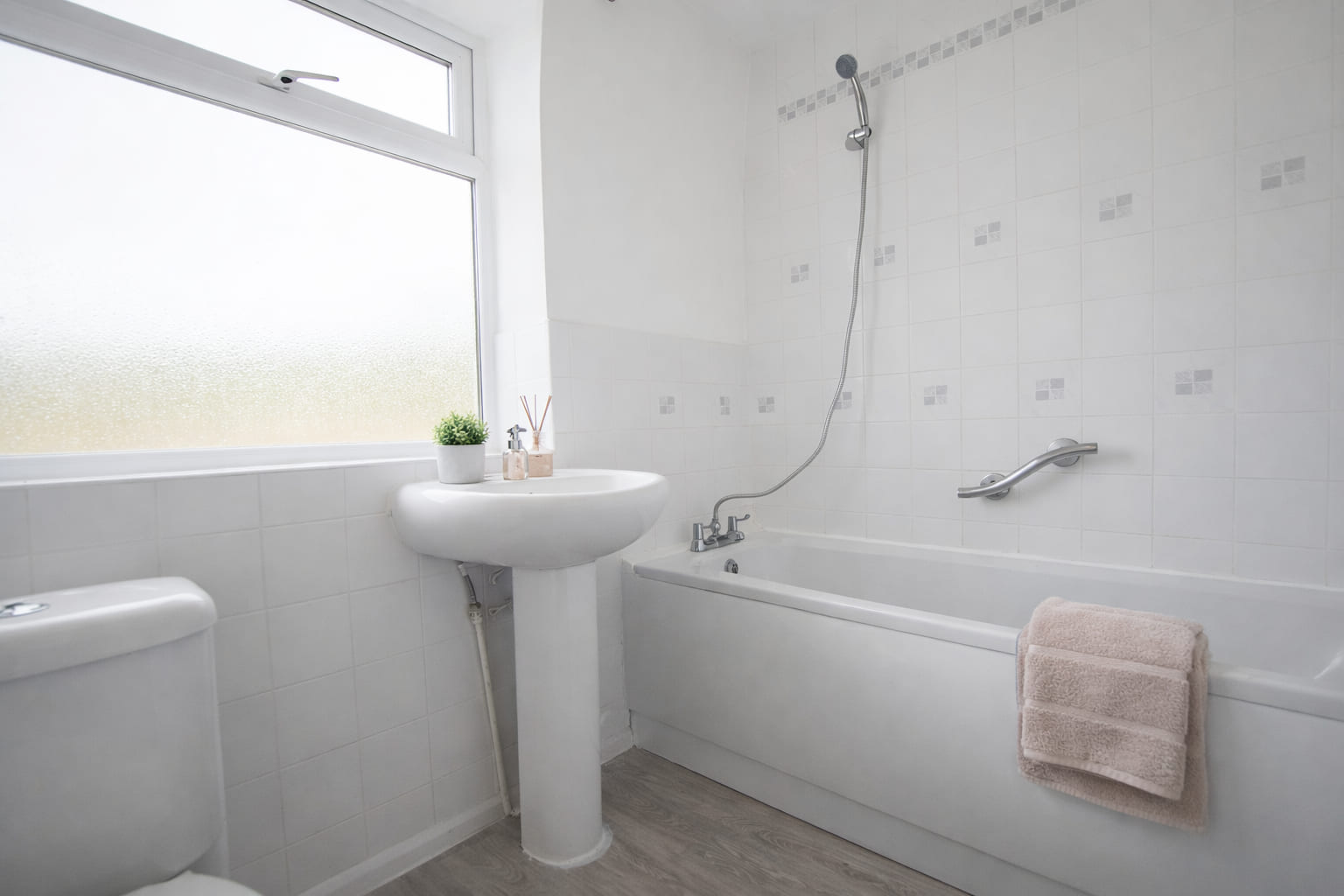 Upstairs, the property has three well-proportioned bedrooms, two of which are doubles and a third that would work well as an office space or childs bedroom, and the bathroom is fitted with a bath and overhead shower.