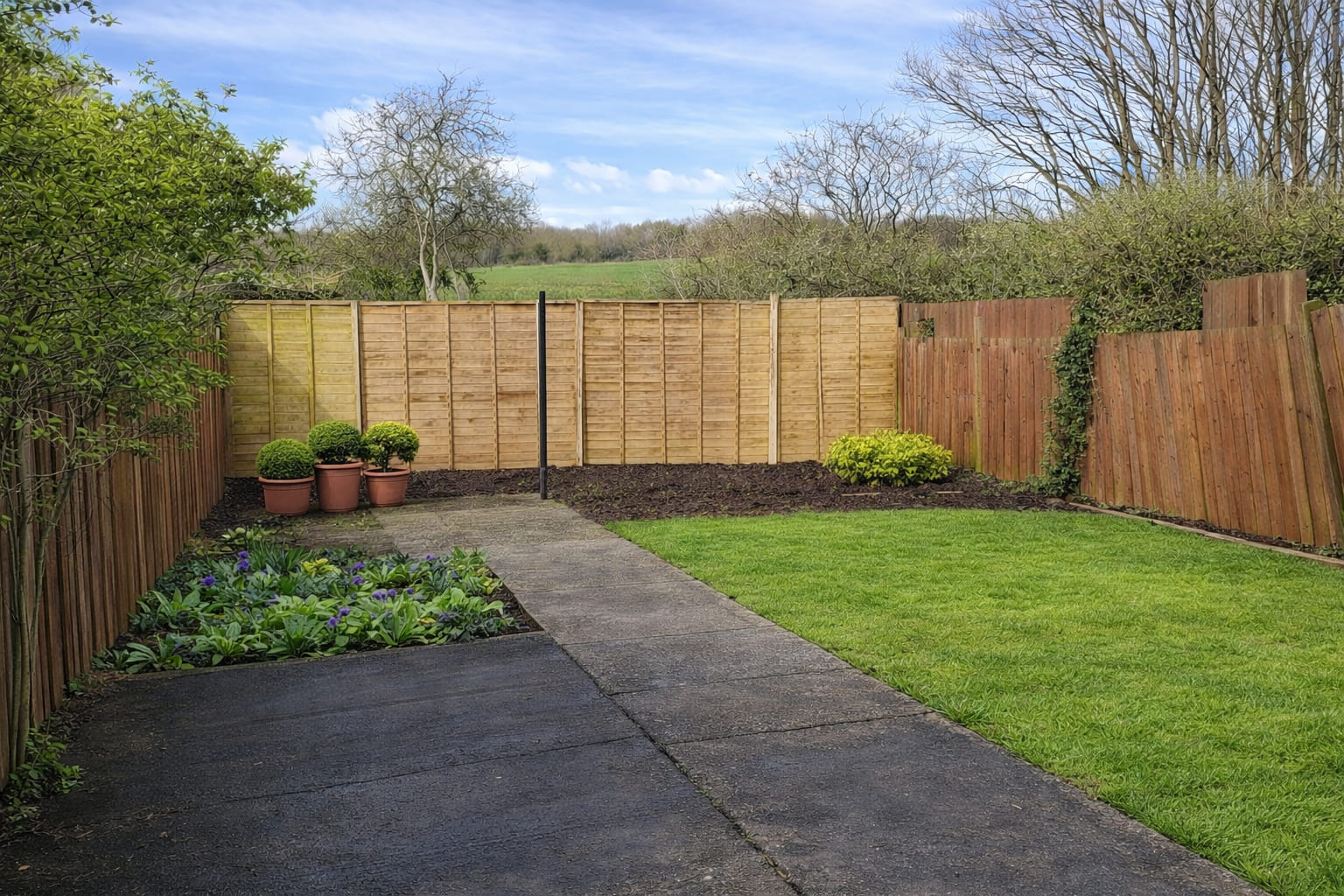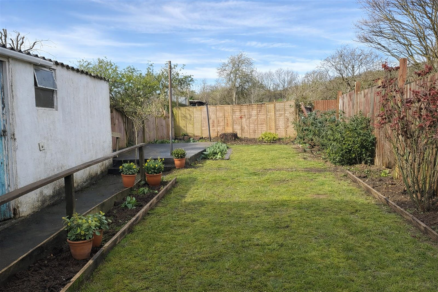 The spacious garden offers a pleasant outdoor space, and includes a practical outhouse, perfect for storing gardening equipment, tools, or additional outdoor items.