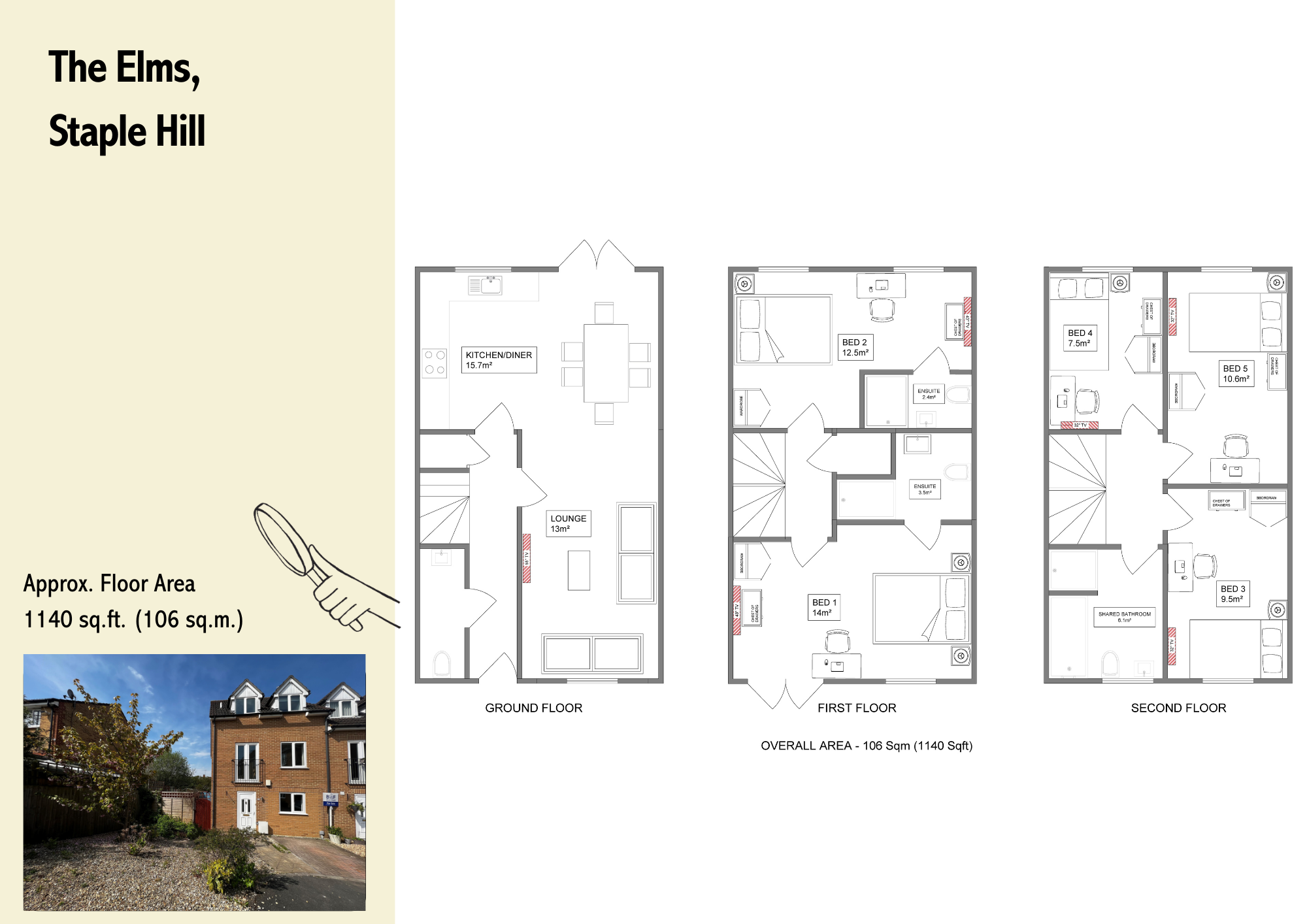 The whole property was completely renovated to an exceptionally high standard throughout the Summer of 2023, including a brand new kitchen, three brand new bathrooms each with a smart suite and tasteful tiling in place, new décor including a feature wall in each bedroom, and new flooring and carpets throughout. The house has been finished with contemporary fixtures and fittings, including the ceiling lights, TV in each room, bedside lamps, curtains, blinds, and stylish furnishings.