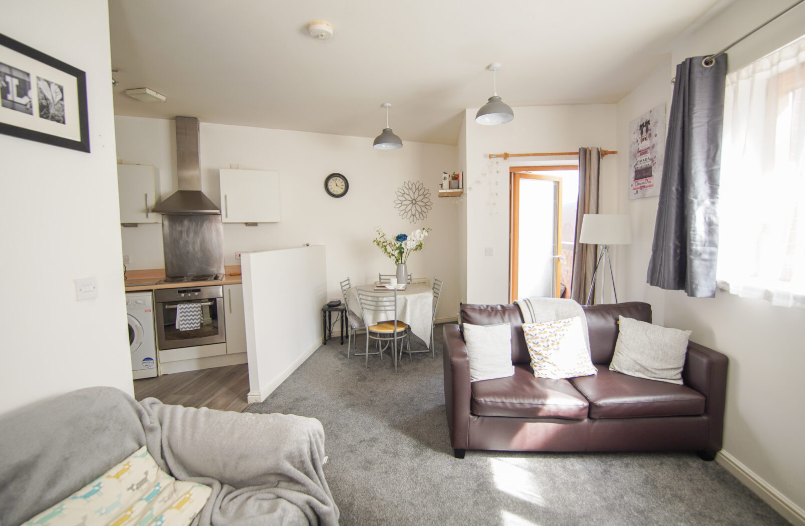 The flat is located on the ground floor and is furnished as seen and briefly comprises; an entrance hall with two storage cupboards, a bathroom with a shower over the bath, a large double bedroom, an open plan lounge/ kitchen/ diner with access to a small private outdoor space, the kitchen is modern with white goods including a washing machine, fridge freezer, oven & hob.