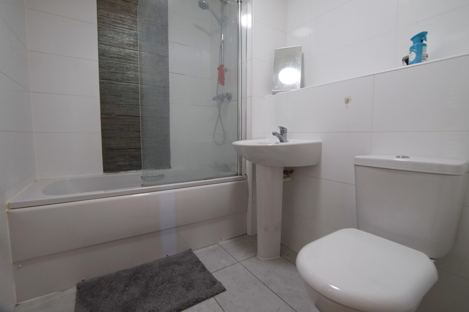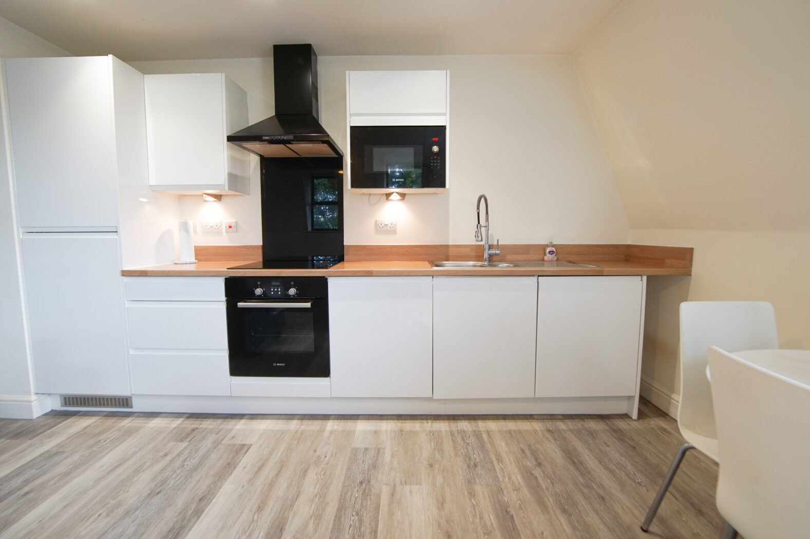 The accommodation briefly comprises: a spacious open plan kitchen/living/dining room with an integrated fridge freezer, dishwasher, washing machine, oven and hob, two good sized double bedrooms and a bathroom with a shower over the bath.
