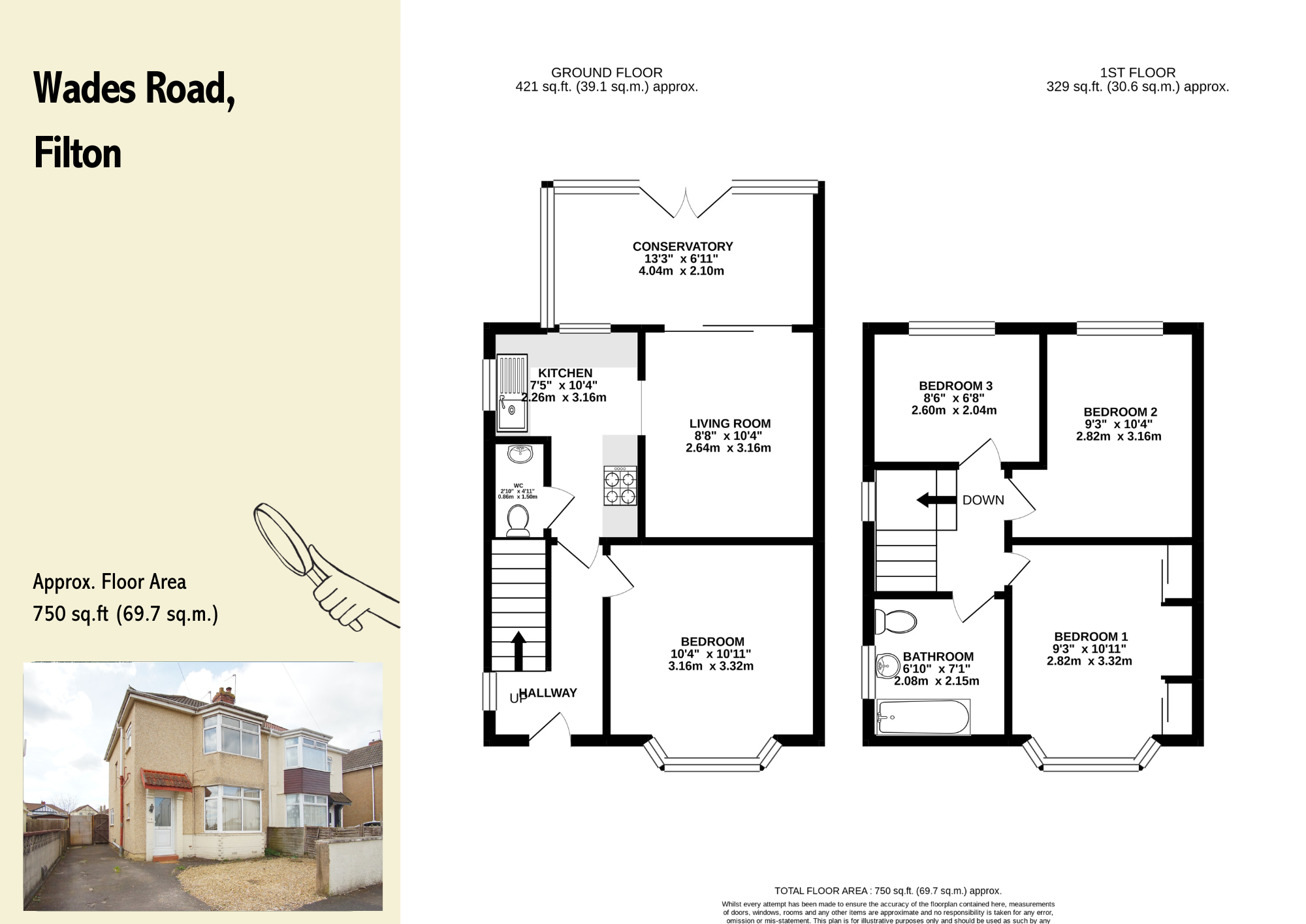 The accommodation briefly comprises: a modern kitchen with plenty of cupboard space, a living room which is furnished with sofas, a large conservatory which is heated and can be used as a second reception room, a large double bedroom with bay windows on the first floor, two further double bedrooms one of which has built in wardrobes, a smaller double bedroom with a 4ft bed, a big bathroom with a shower over the bath and a big back garden with a patio and outside storage space.