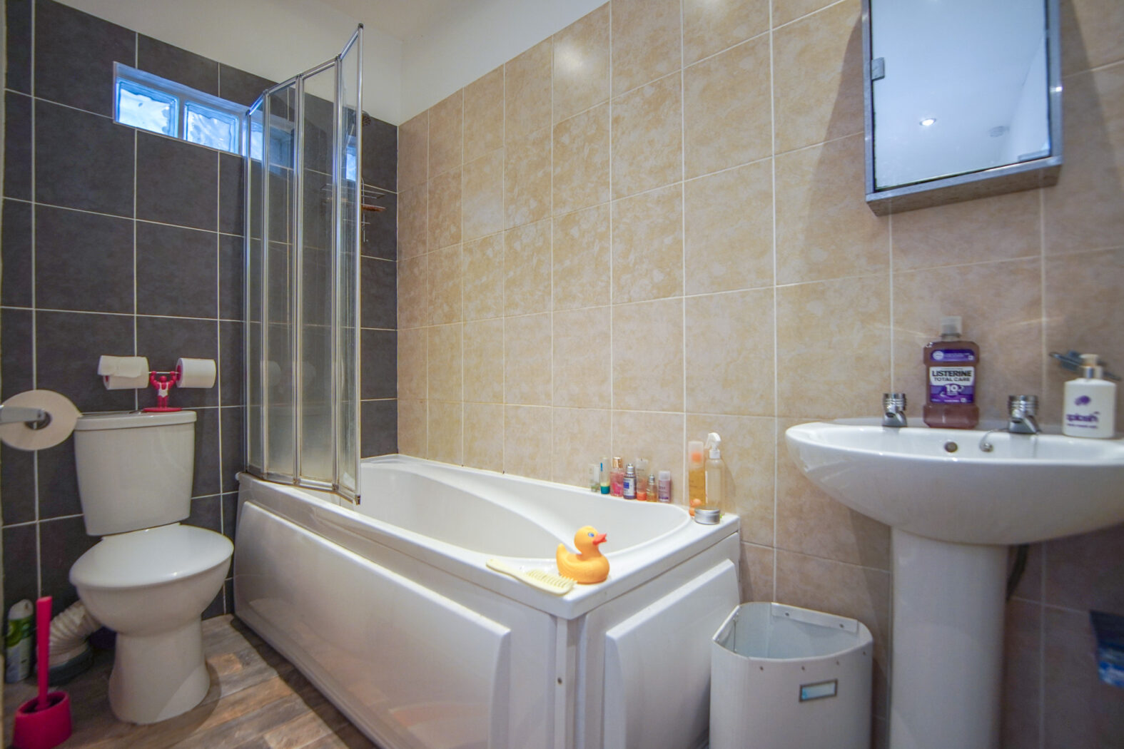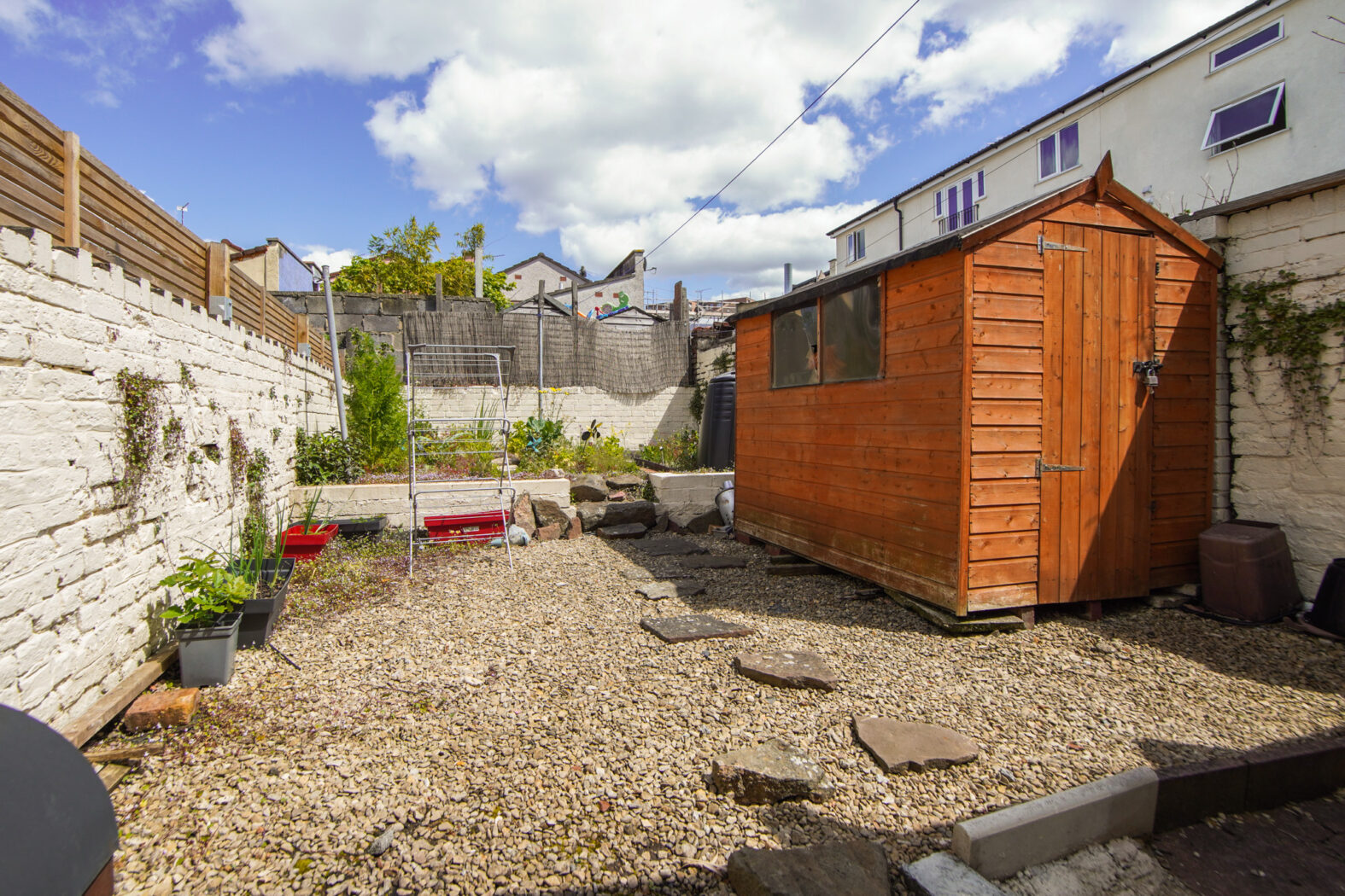 As you enter the house, you’ll find two spacious reception rooms, perfect for a living area and dining space. The separate kitchen overlooks the rear garden, which includes a shed for storage. Upstairs, the property has three good-sized bedrooms. The bathroom features a shower head over the bath.